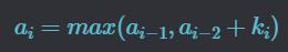 dp[i] = max(dp[i-2] + array[i], dp[i-1])