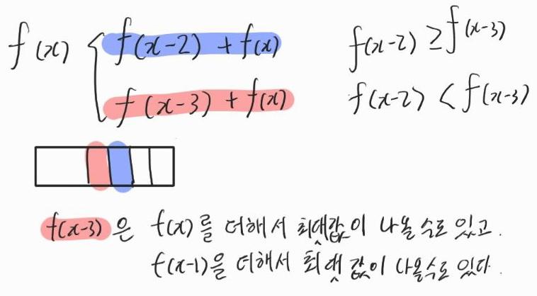 나는 f(x-2)이 f(x-3)보다 더 크다 해도 f(x)를 더하니까, 내가 푼 방식은 흐름은 맞지만, 결론은 틀렸다.