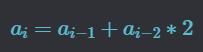 왼쪽부터 i-2까지 길이가 덮개로 이미 채워져 있는 경우 덮개를 채우는 방법은 2가지 경우가 있다. 이 두 방법은 서로 다른 것이므로, 결과적으로 a_{i}는 a_{i-1} + a_{i-2} + a_{i-2}가 된다.