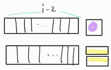 왼쪽부터 i-2 미만의 길이에 대해서는 고려할 필요가 없다. 사용할 수 있는 덮개의 형태가 최대 2x2의 직사각형 형태이기 때문이다. 따라서 바닥을 채울 수 있는 형태는 위의 경우밖에 없다.