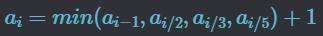 dp[i-1] = min(div_5, div_3, div_2, minus_1, dp[i] + 1)