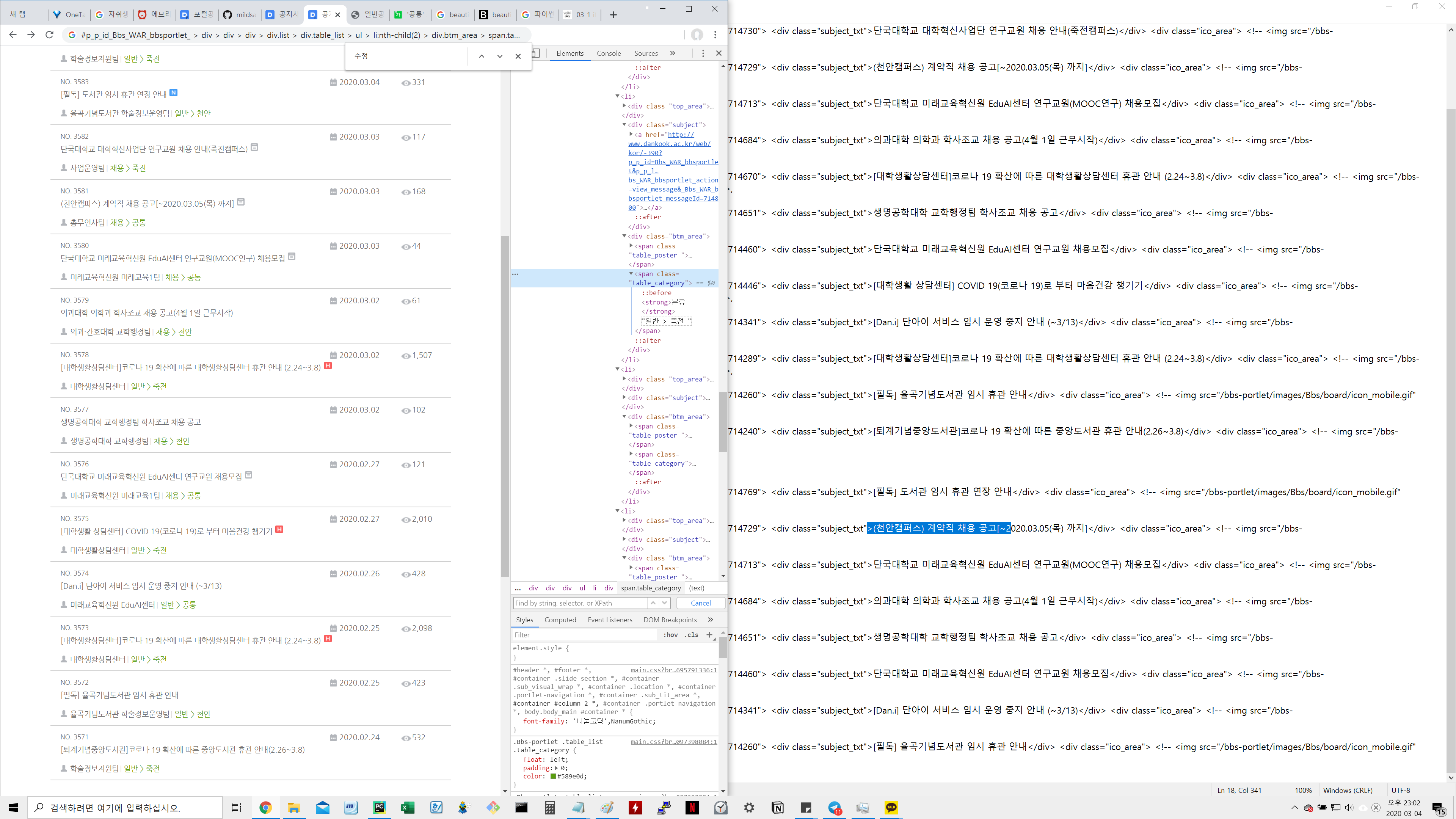 그럼 정제한 단어(천안 / 죽전 / 공통)을 기반으로 제목 / url 데이터를 가지고 있는 부분을 수정해보자.