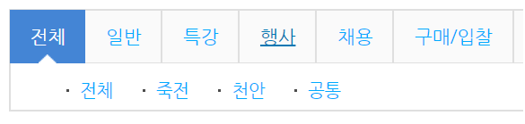 일반부분은 특강 / 행사 / 채용 / 구매/입찰로 나뉜다.