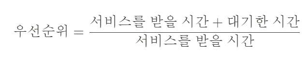 - 우선 순위를 계산하여 수치가 높은 순으로 우선 순위가 부여