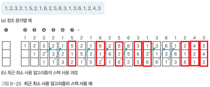 최근 최소 사용 대치 알고리즘 (LRU, Least Recently Used)과거 오랫동안 사용하지 않은 페이지를 대치