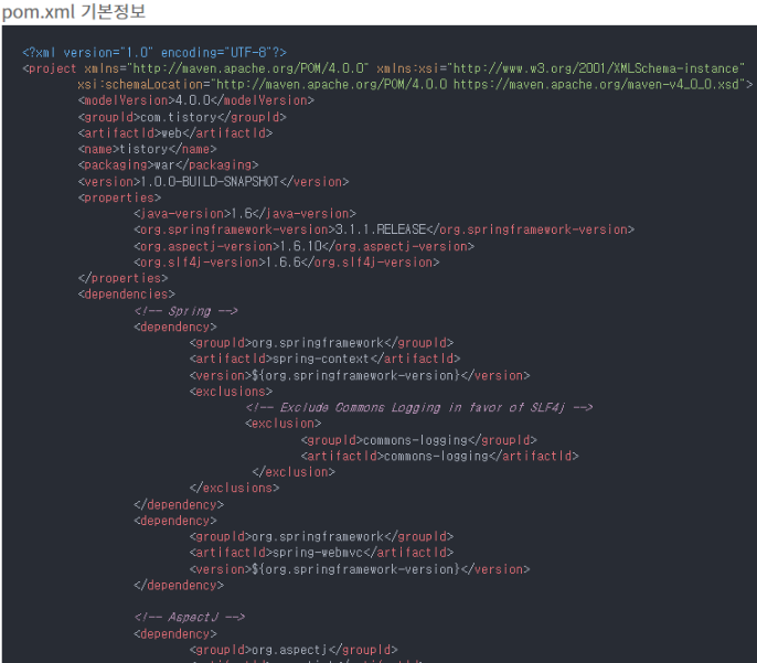 아래는 <dependencies> 태그 안에 들어갈 내용입니다.