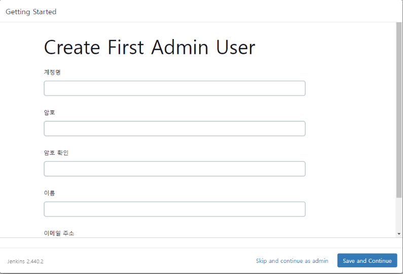 - 설치 완료 후 관리자 계정정보를 입력합니다.