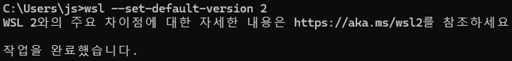 이후, WSL2를 기본 버전으로 설정해준다.파워셸을 관리자 권한으로 실행후, 아래 명령어 실행!