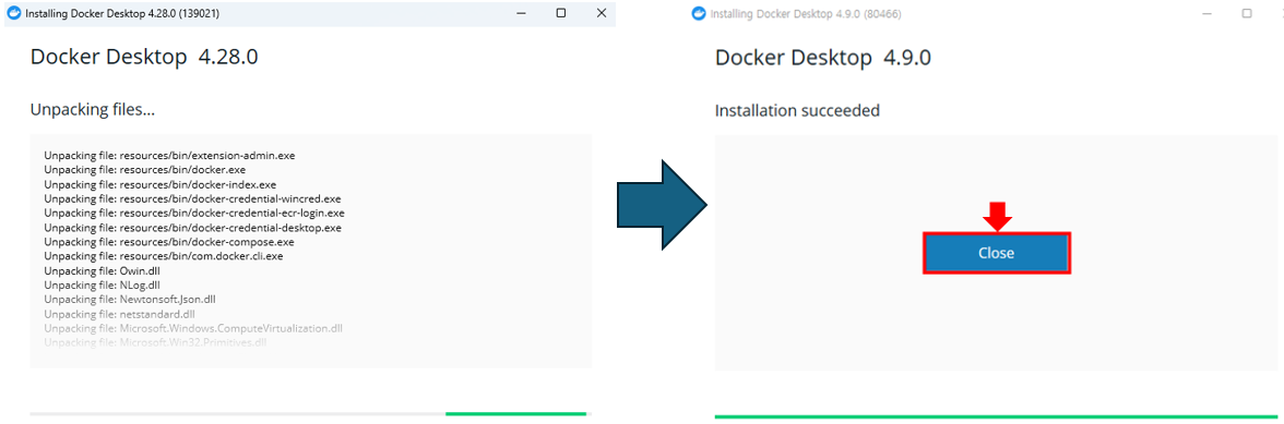 아래와 같이 설치중인 화면이 뜨고 나서, Installation succeeded가 뜨는 것을 볼 수 있다.