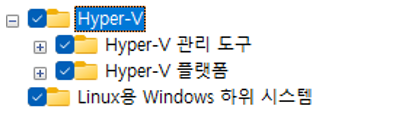 윈도우의 기능 켜기/끄기에 들어가서 Hyper-V 항목 아래,Linux용 Windows 하위 시스템을 활성화해준다.