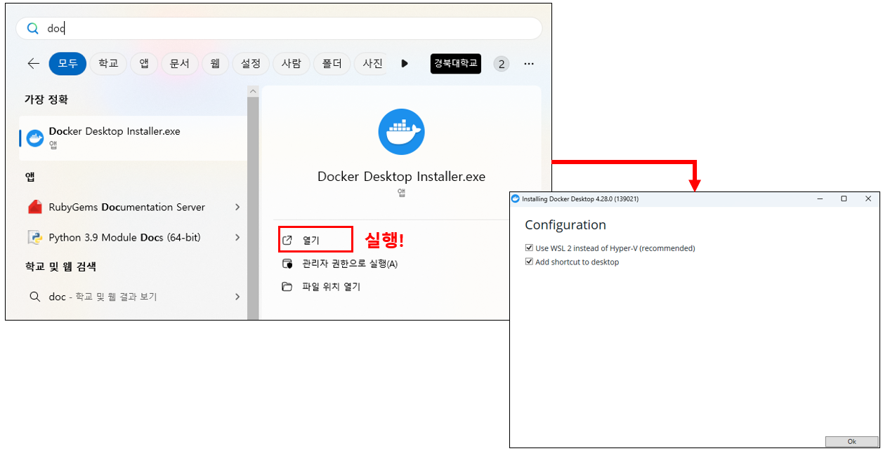 아래와 같이 Docker(셋업파일)를 찾아 실행해준다.
