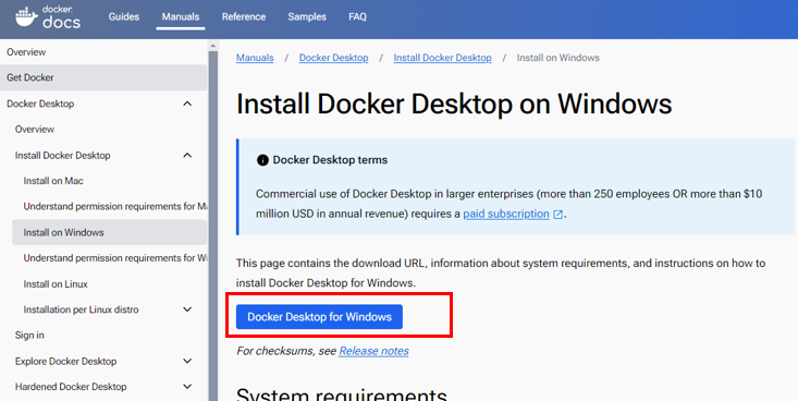 이제 본격적으로 Docker를 설치하자. 해당 링크(Click)로 들어가서 설치할 수 있다.