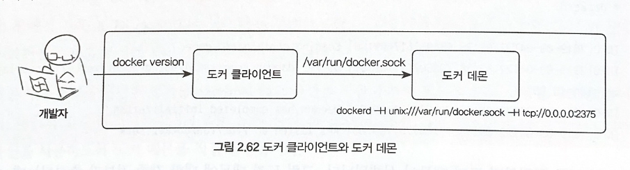 도커 클라이언트와 데몬은 동일한 시스템 내에서 실행될 수 있고, 또는 도커 클라이언트를 원격 도커 데몬에 연결할 수도 있다.