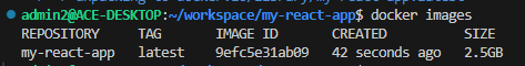 - 이제 my-react-app 이라는 이름의 이미지가 만들어졌는지 확인해보자.